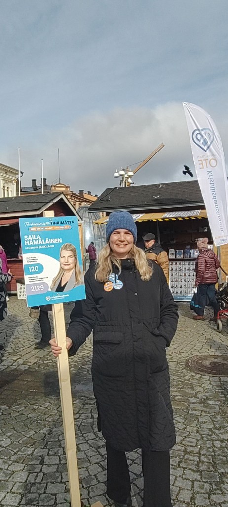 Paikallisosaston työ on konkreettista ja maanläheistä. Se tarkoittaa ehdokkaiden etsimistä, vaalityön tekemistä, toritapahtumien järjestämistä, viestintää ja yhteydenpitoa – usein pieniä asioita, joista kokonaisuus rakentuu. Olin itse ehdokkaana alue- ja kuntavaaleissa, vaikka äänimäärä ei riittänyt luottamustehtävään. Vuonna 2026 en jatka puheenjohtajana. Kun vaalityön vaativa vaihe jää taakse, haluan keskittyä rauhallisemmin oman ääneni löytämiseen ja siihen, miten osallistun yhteiskunnalliseen keskusteluun. Vaikuttamisen tapoja on monia – ja nyt tämä tuntuu minulle oikealta tavalta jatkaa.